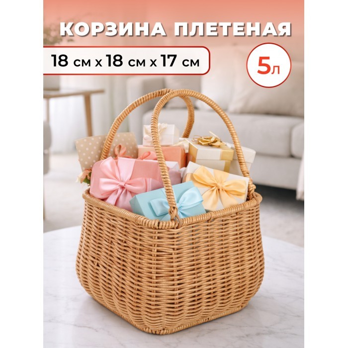 Корзина плетеная с ручками Фонарик (2 ручки) (20*18*16 ) иск/ротанг, песочный 264264