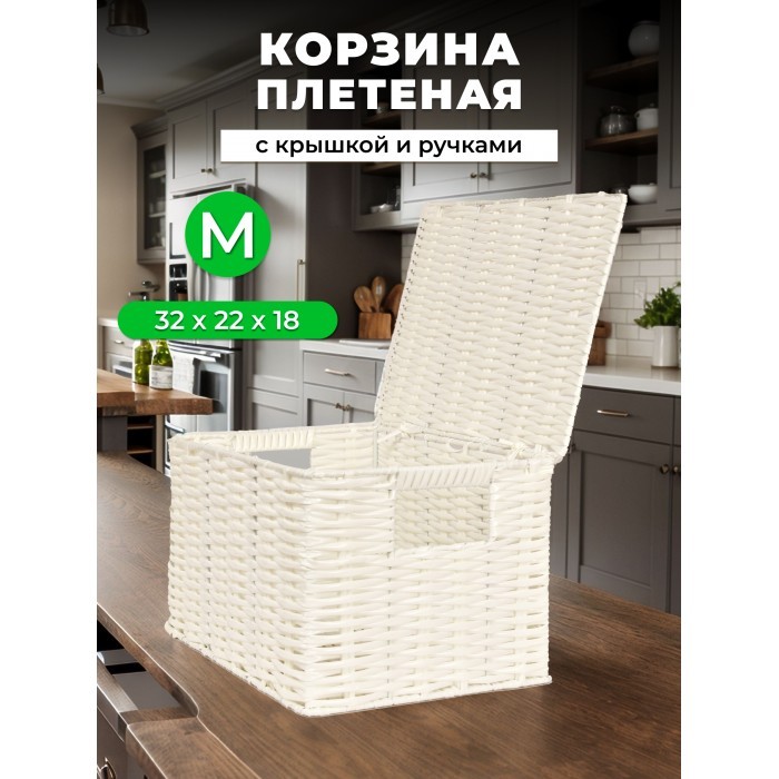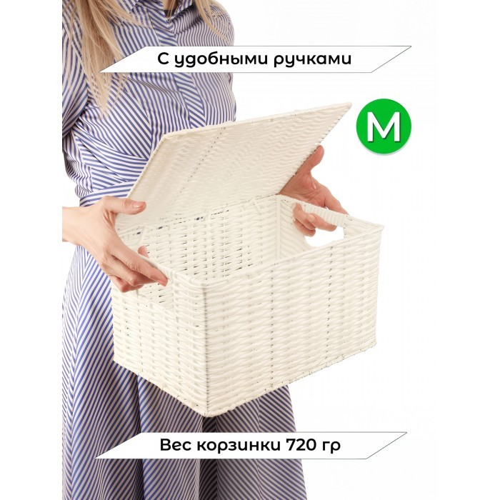 Корзина плетеная с/крыш M 320*220*180-mpl-fbo иск/ротанг, белый 265524