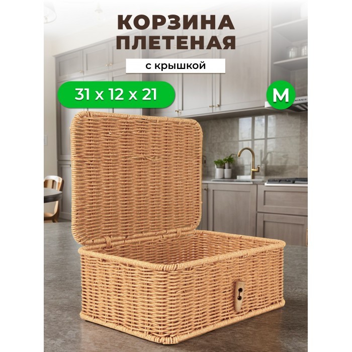 Корзина плетеная с/крыш Пуговка M 311*211*110-mpl-fbo иск/ротанг, песочный 265670