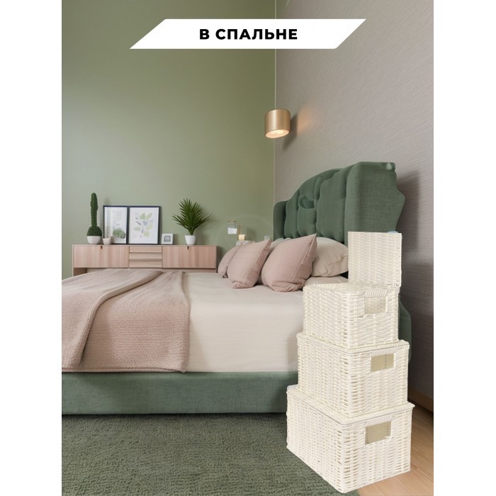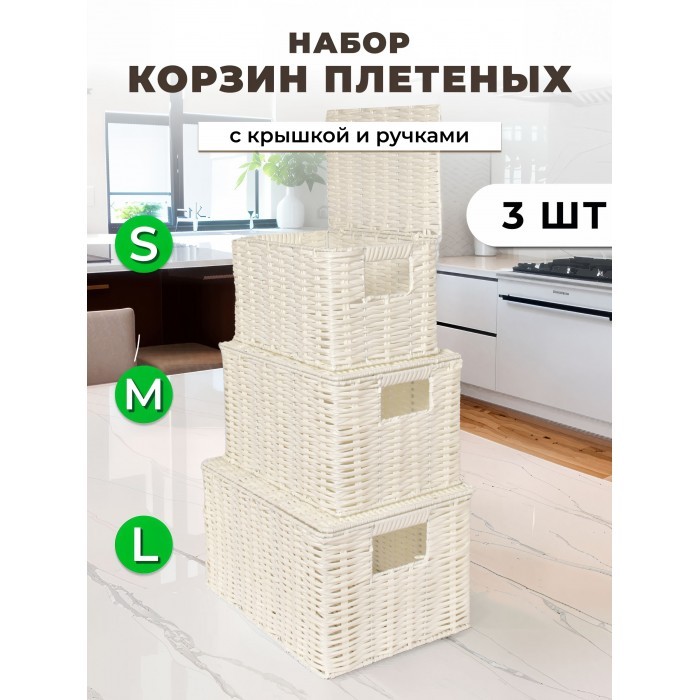 Корзина плетеная с/крыш КОМПЛЕКТ 3шт (S, M, L) + иск/ротанг, белый 265522