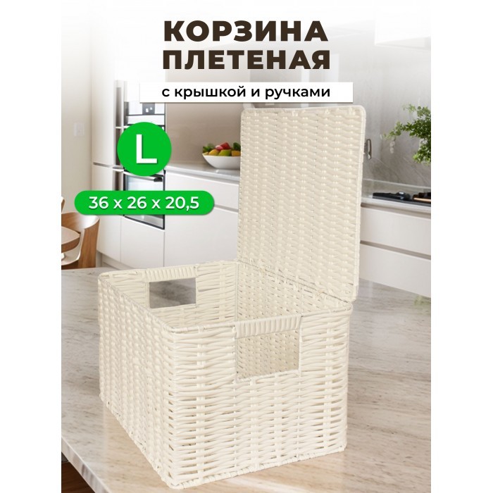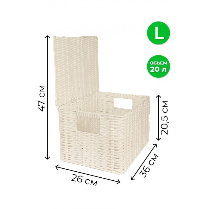 Корзина плетеная с/крыш L 360*260*200-mpl-fbo иск/ротанг, белый 265523