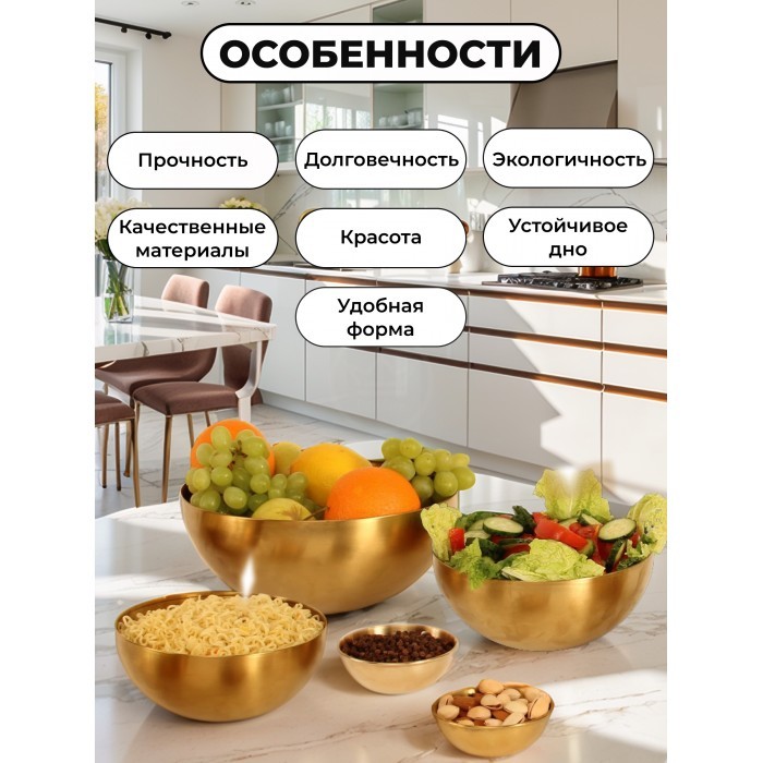 Набор Мисок из нержавеющей стали 5пред (20см-2шт+25см-1шт +соусник 8, 5 см-2 шт ) золото 265459