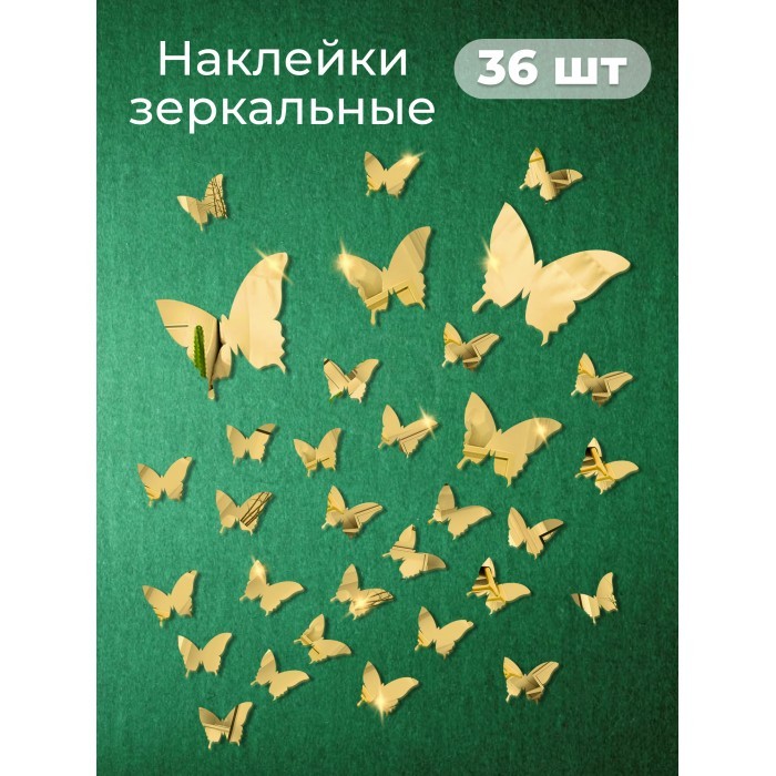 Интерьерные зеркальные наклейки Бабочки-1 набор ( 36 штук ) золото 264242