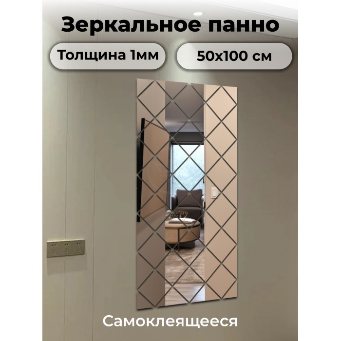 Интерьерные зеркальные наклейки Панно Квадраты 46 шт (50*100 см, толщ 1мм) 263087