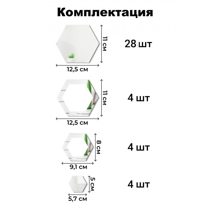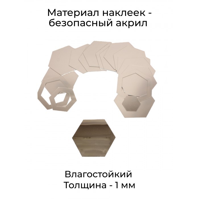 Интерьерные зеркальные наклейки Соты-2шт, 28+4шт серебро 265877