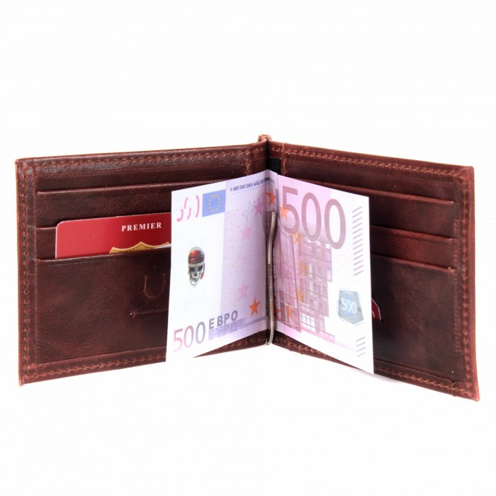 Зажим для купюр Premier-М-54 натуральная кожа (8 карм+карм под мелочь) коричневый тем пулл-ап (152) 216234