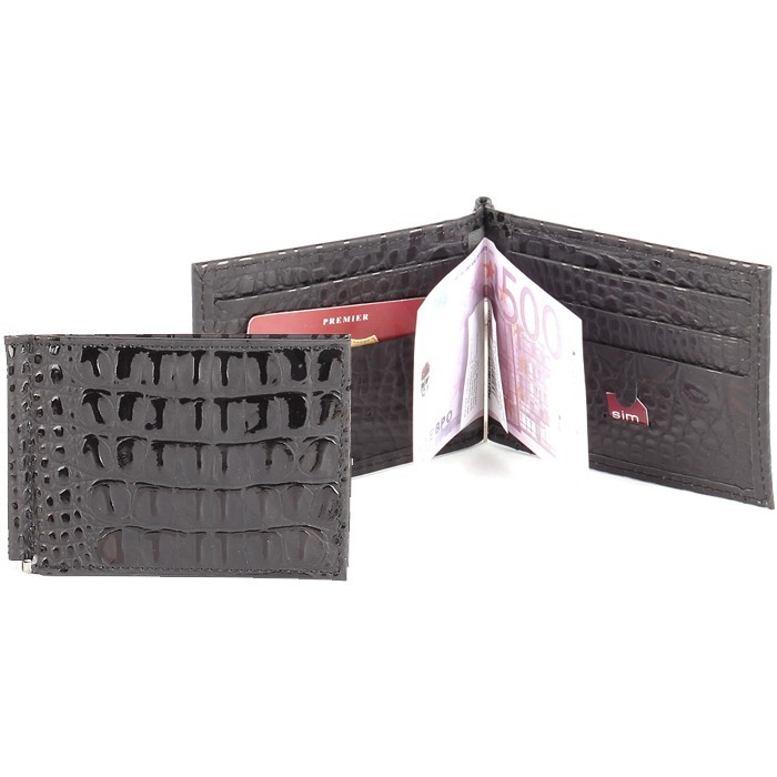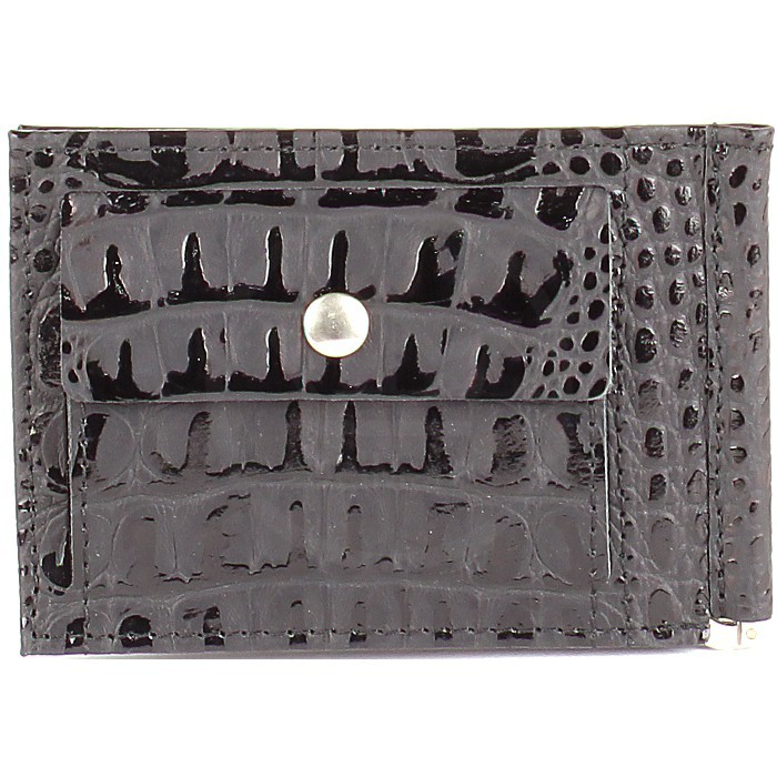 Зажим для купюр Premier-М-54 натуральная кожа (8 карм+карм под мелочь) черный кайман (126) 133977