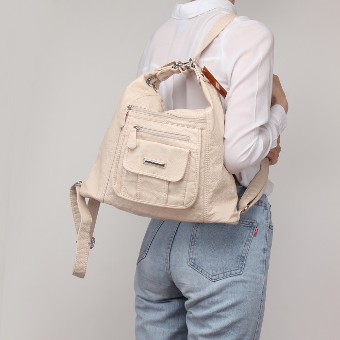 Сумка женская искусственная кожа Guecca-1663 (рюкзак change), 2отд, св, бежевый SALE 236027