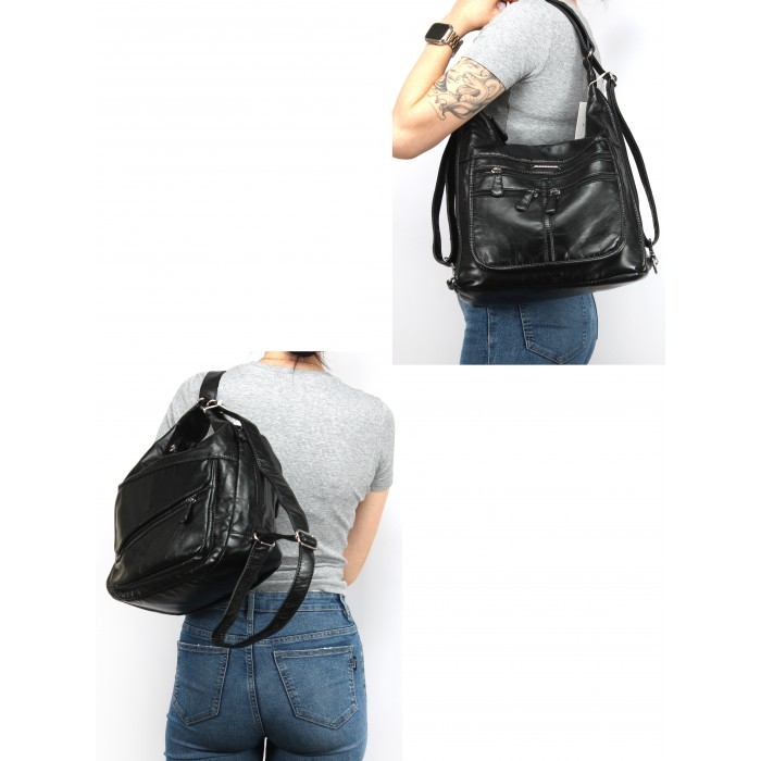Сумка женская искусственная кожа Guecca-99417, (рюкзак-change) 2отд, черный SALE 263699